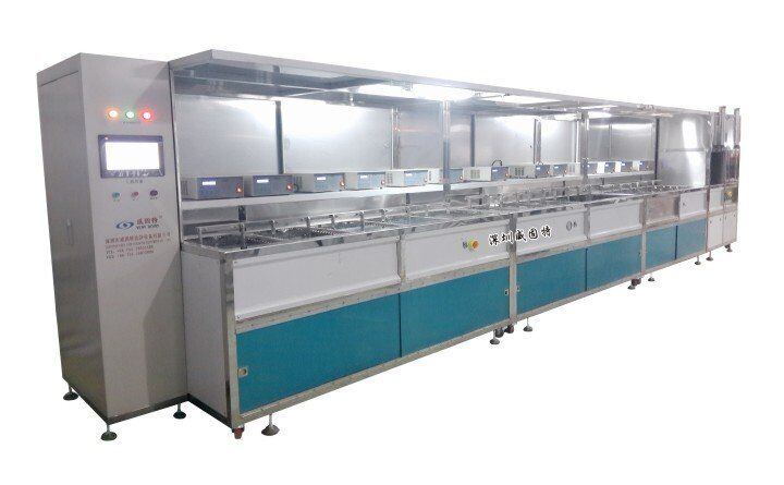 鋁材手機(jī)外殼陽極氧化處理光學(xué)超聲波清洗機(jī)威固特鋁材手機(jī)外殼陽極氧化處理光學(xué)超聲波清洗機(jī)主要有前清洗、工序間清洗、鍍膜前清洗、成品件的清洗等多種規(guī)格的機(jī)型組成。